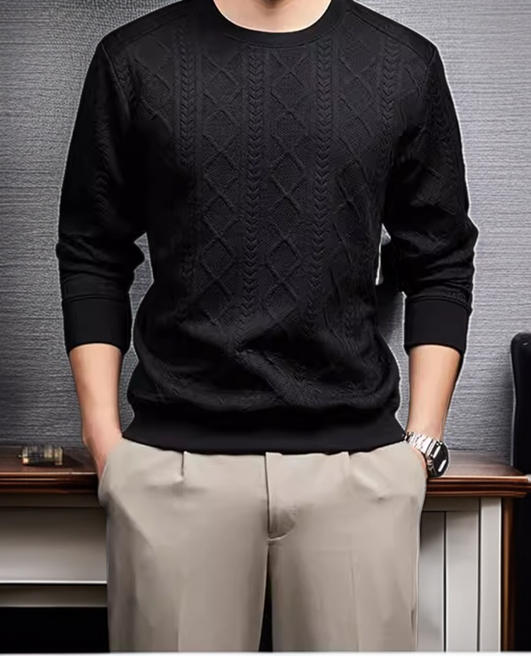 비즈니스맨 니트 긴팔 라운드넥 실타래 세련되고 모던 이너 니트 상의 꽃무늬 비즈니스맨 니트